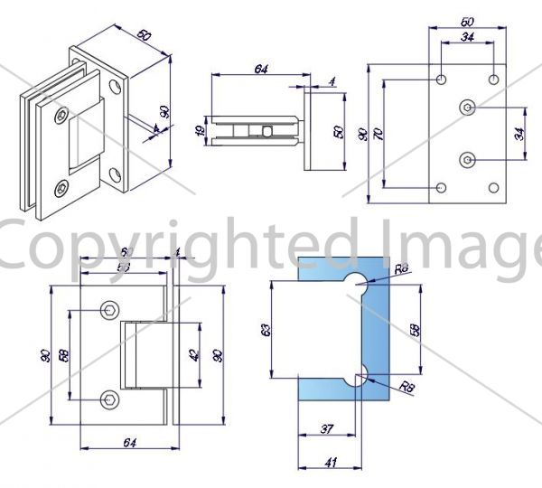 Placa de montaj este prevăzută cu patru gauri pentru dibluri și este poziționată central pe balama, ceea ce permite distribuirea uniformă a sarcinii pe suprafața portantă.