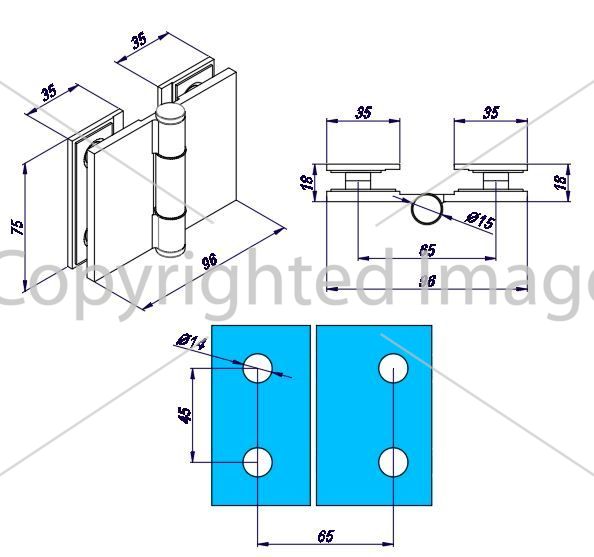 Balama cu mișcare liberă, sticlă-sticlă, unghi de deschidere de la -45° până la 180°, fără fixare și fără amortizor.